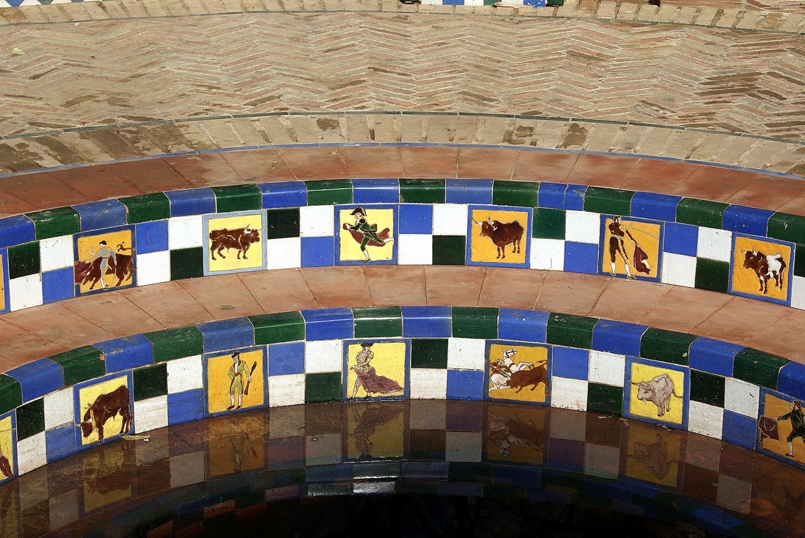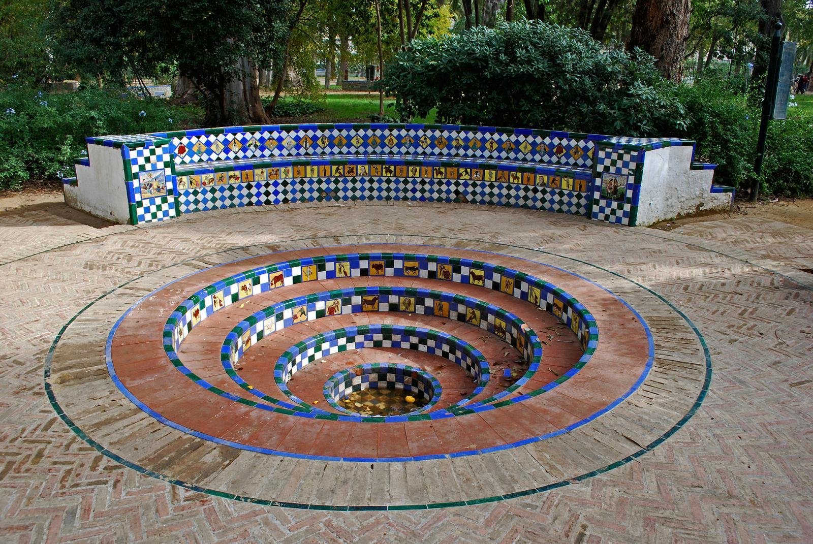 Inmediatamente detrás de la glorieta de los Hermanos Álvarez Quintero, en un nivel más bajo y entre naranjos, setos de pitosporos, de boj y unos altos eucaliptos, Sevilla tuvo un delicado recuerdo al construir la Fuente de los Toreros.