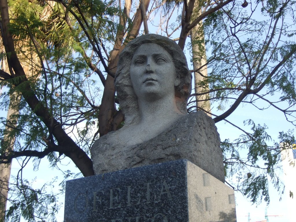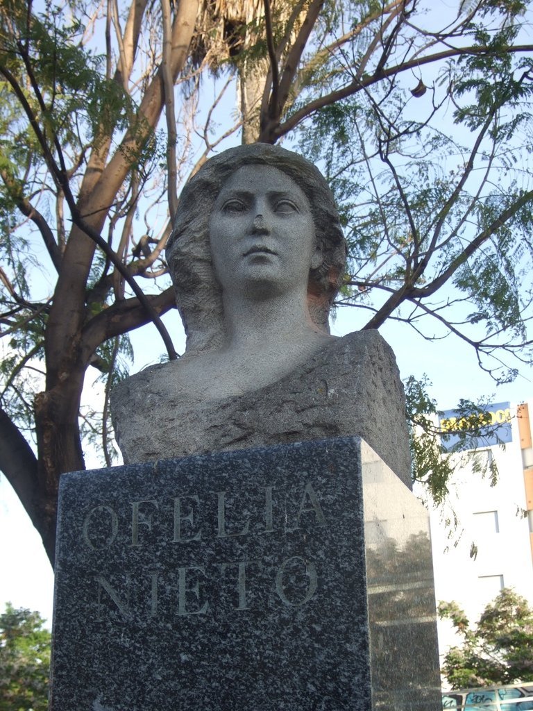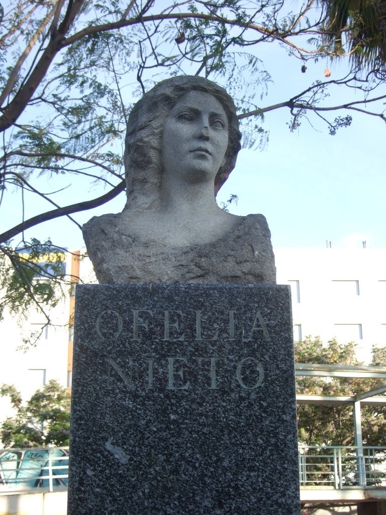 Monumento dedicado a la famosa cantante de ópera Ofelia Nieto. Se dispone sobre un pedestal alzado en una gran plataforma, todo ello realizado en granito. Sobre el prisma se sitúa el busto con el retrato de la artista realizado en piedra.